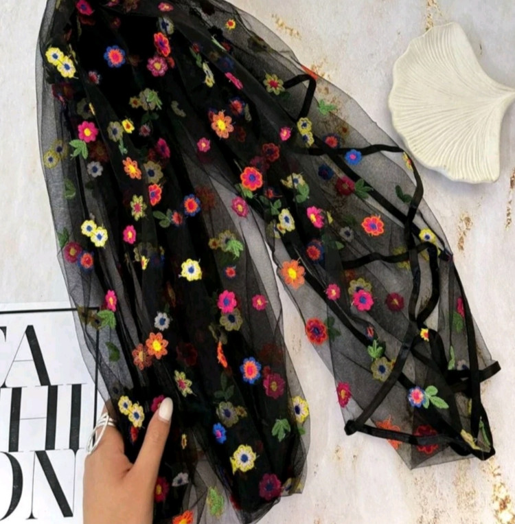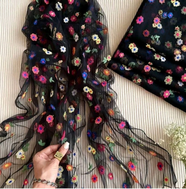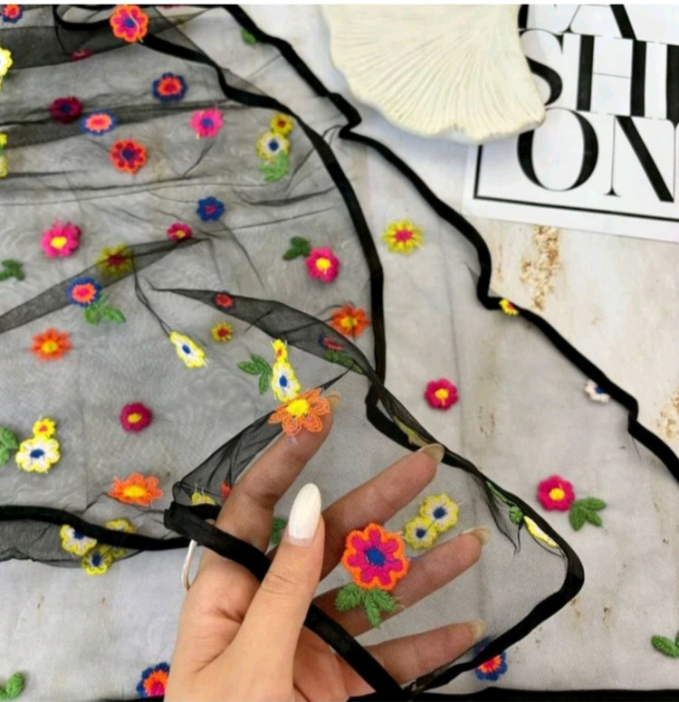 شال توری گلدوزی شده بابونه رنگی مجلسی