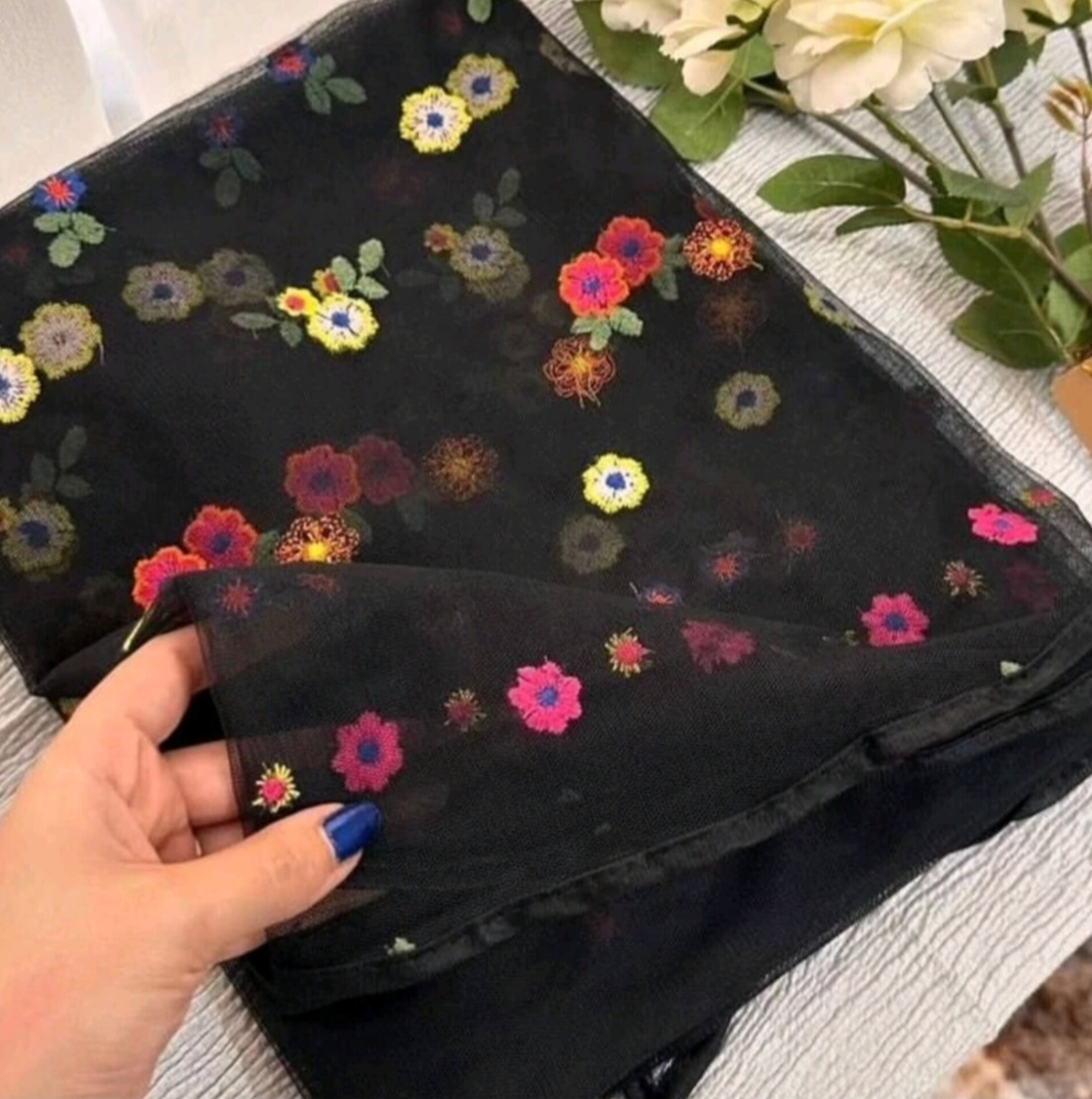 شال توری گلدوزی شده بابونه رنگی مجلسی